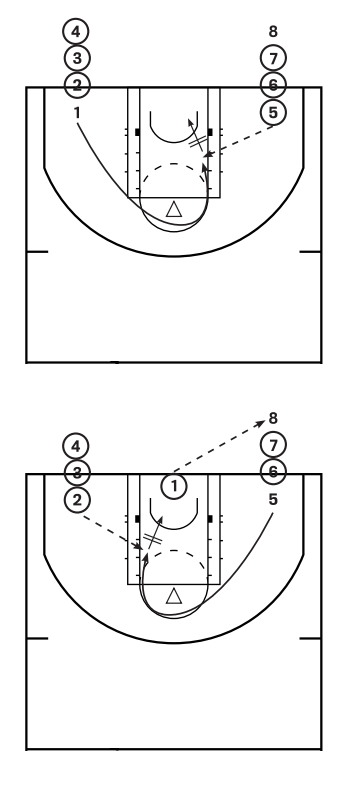 - 5 passa la palla a 1 che riceve e tira