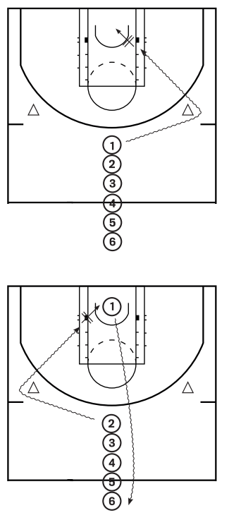Rotazione file: Quando si segna, si passa la palla al primo senza palla e ci si rimette in fila